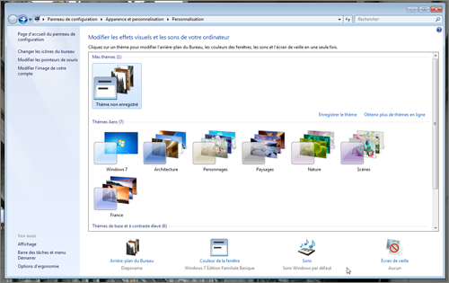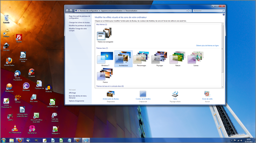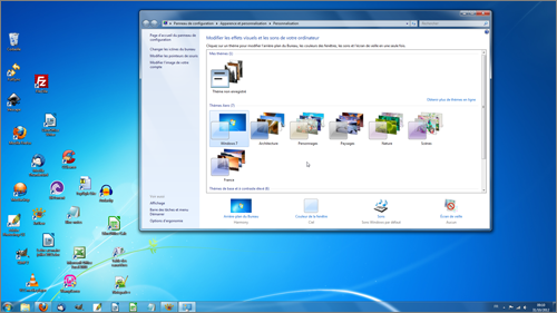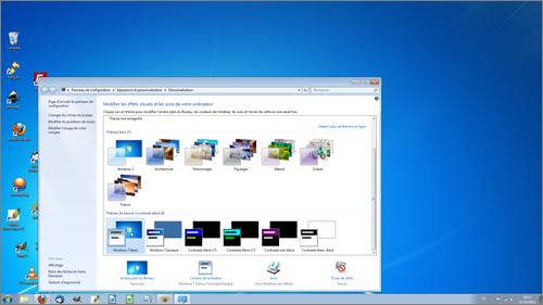 Vous pourrez ensuite passer, comme nous l’avons vu, d’un thème à un autre, qu’il s’agisse de ceux proposés par Windows ou de ceux que vous aurez constitué à partir de vos photos et couleurs de fenêtres personnalisés.