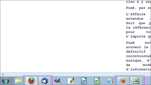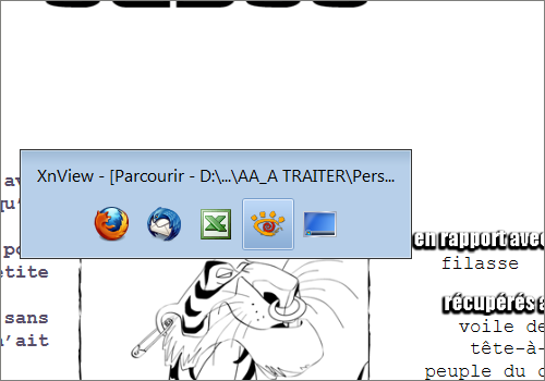 Il s’agit des fenêtres ouvertes : de gauche à droite, en plus du navigateur Firefox, nous trouvons Thunderbird (messagerie), XnView (visionneuse d’image) et Excel (tableur).