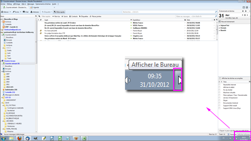 Cliquez simplement sur ce petit rectangle, placé tout à fait à droite de la barre des tâches :