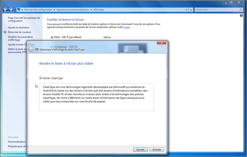 Ce réglage permet de lisser les textes à l’écran. Sur cette vue, ci-dessous, nous constatons, par la petite case cochée, que l’effet est activé :