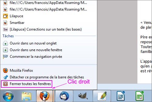 Prenons cet exemple, ci-dessous, où 4 fenêtres de Firefox sont ouvertes.