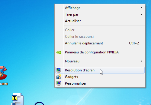Toujours sans appuyer sur le bouton de la souris, revenez sur le premier menu et cliquez sur « Résolution d’écran » :