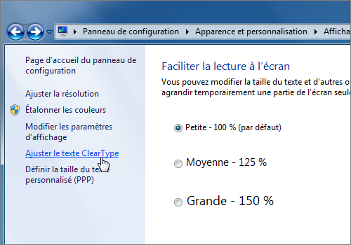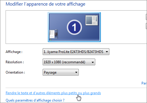 Cliquons, à présent, sur l’option « Rendre le texte et d’autres éléments plus petits ou plus grands » :