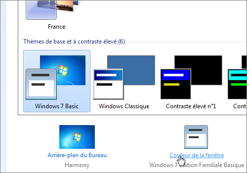 Venons-en, à présent, sur un réglage personnalisé qu’il est possible d’effectuer afin de changer la couleur des fenêtres, quel que soit le thème choisi.