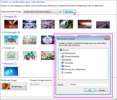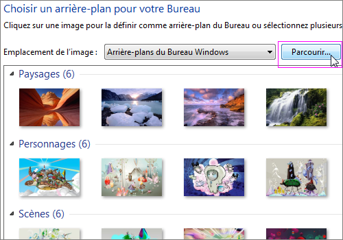 Quel que soit le thème choisi, vous pouvez personnaliser l’image ou les images qui s’affichent en fond de bureau.