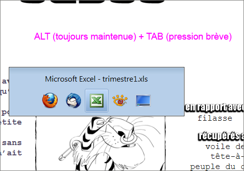 Nous allons voir comment il est possible de passer en revue les fenêtres ouvertes et passer très simplement de l’une à l’autre, sans avoir à cliquer, comme nous l’avons vu précemment, dans la barre des tâches.