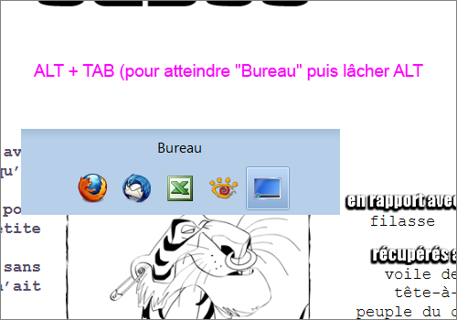 Puis – touche « Alt » toujours maintenue – appuyez une dernière fois sur « Tab » et, quand l’icône « Bureau » est affichée…