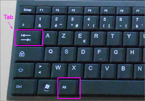 Pour cela, il nous faudra observer le clavier et repérer les touches « Alt » et « Tab » :