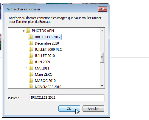 Je choisis ensuite le dossier de photos du Bruxelles :