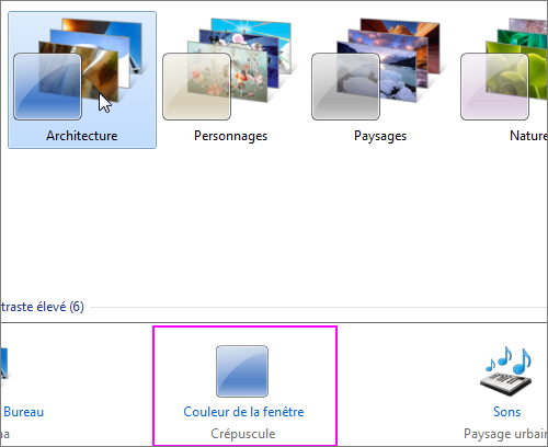 Comme nous l’avons déjà constaté, en bas de la fenêtre des thèmes, se trouve un bouton « Couleur de fenêtre ». Cliquez sur le texte inscrit ici en bleu :